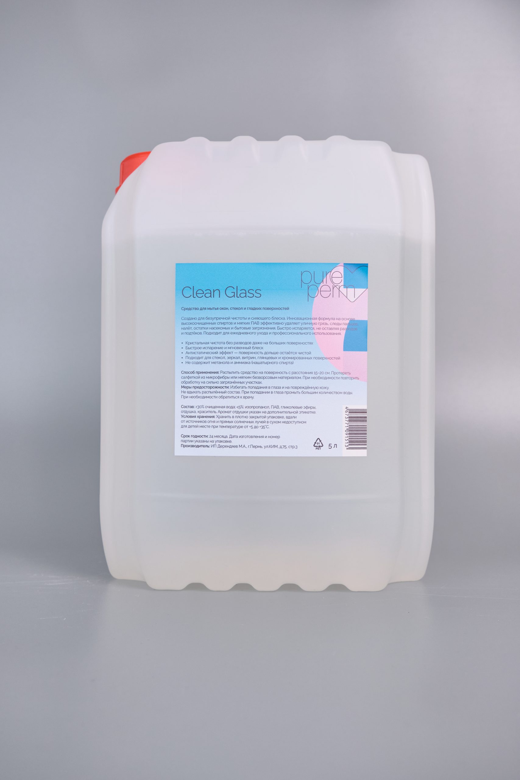 Средство для мытья окон, стекол и гладких поверхностей Clean Glass Pure Perm, 5л — изображение 1