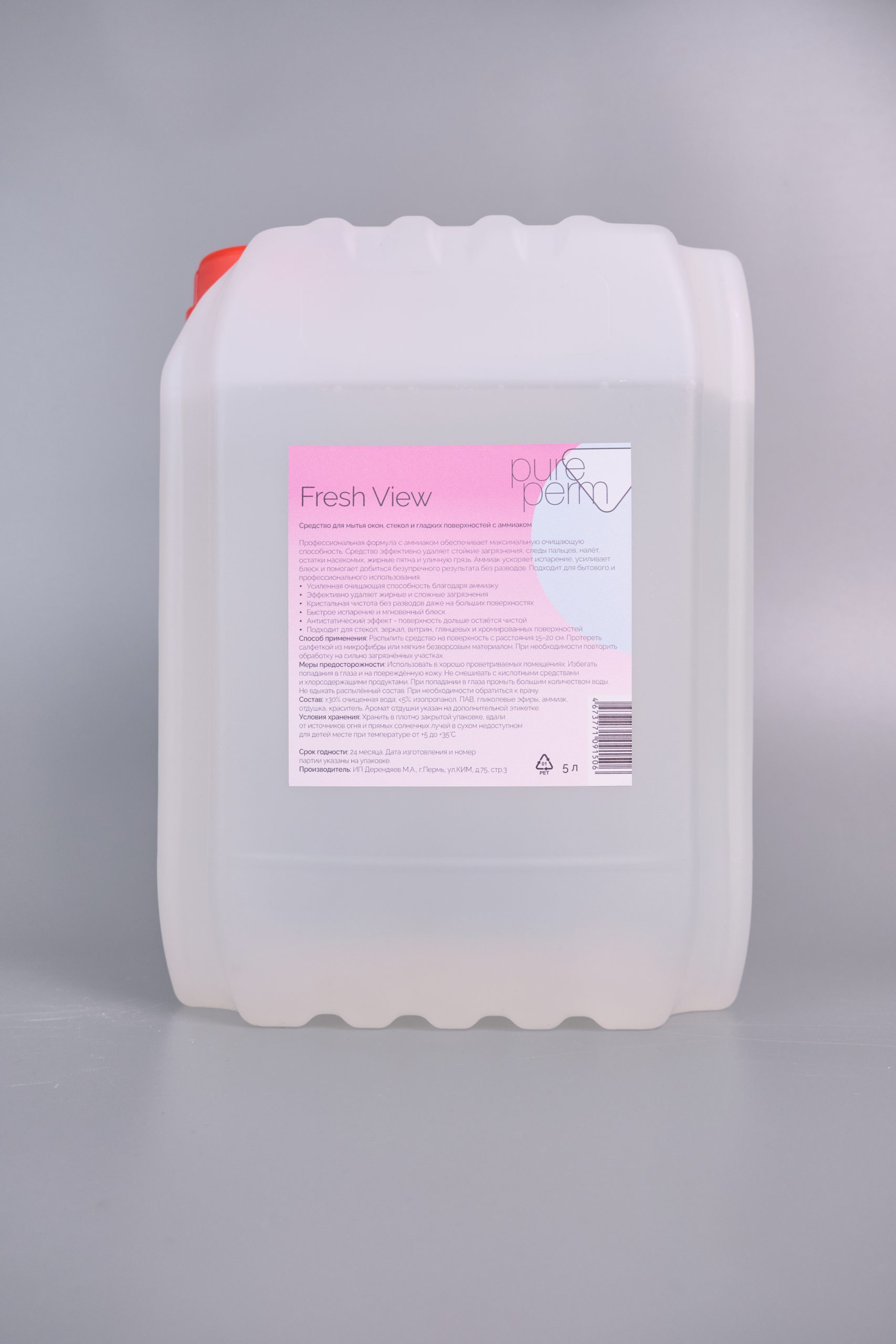 Главная Дом Средства для уборки Средство для мытья окон, стекол и гладких поверхностей с аммиаком Fresh View Pure Perm, 5л